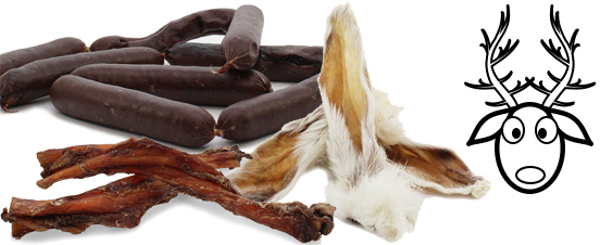 Wir bieten eine große Auswahl an getrockneten Naturkauartikeln wie Rinderohren, Hühnerhälse, Pansen oder Geweihstücke sowie getreidefreie Kauknochen und fettarme Alternativen ideal auch für ernährungssensible Hunde.
