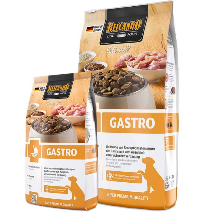 Belcando Vetline Gastro ist das ideale Diätfutter für Hunde mit empfindlichem Magen oder Verdauungsproblemen. Es wurde speziell entwickelt für Hunde, bei denen der Tierarzt aufgrund einer Magen-Darm-Erkrankung eine Futterumstellung auf ein entsprechendes Diät-Alleinfuttermittel empfiehlt. Auch bei kurzzeitigen Verdauungsbeschwerden wie Erbrechen oder Durchfall ist Vetline Gastro eine optimale Schonkost für Hunde, die Magen und Darm entlastet und gleichzeitig hervorragend schmeckt.