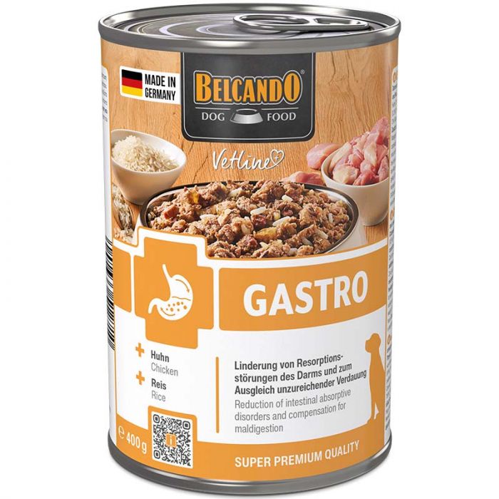 Belcando Vetline Gastro ist das ideale Diätfutter für Hunde mit empfindlichem Magen oder Verdauungsproblemen. Es wurde speziell entwickelt für Hunde, bei denen der Tierarzt aufgrund einer Magen-Darm-Erkrankung eine Futterumstellung auf ein entsprechendes Diät-Alleinfuttermittel empfiehlt. Auch bei kurzzeitigen Verdauungsbeschwerden wie Erbrechen oder Durchfall ist Vetline Gastro eine optimale Schonkost für Hunde, die Magen und Darm entlastet und gleichzeitig hervorragend schmeckt.