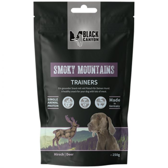 Der getreidefreie Single Protein Trainers Snack von Black Canyon hat einen hohen Fleischanteil und enthält eine leckere Kombination aus ausgesuchtem frischem Obst und Gemüse wie auch eine Kräutermischung, welche gut für ein starkes Immunsystem ist. Ideal für ernährungssensible Hunde.
