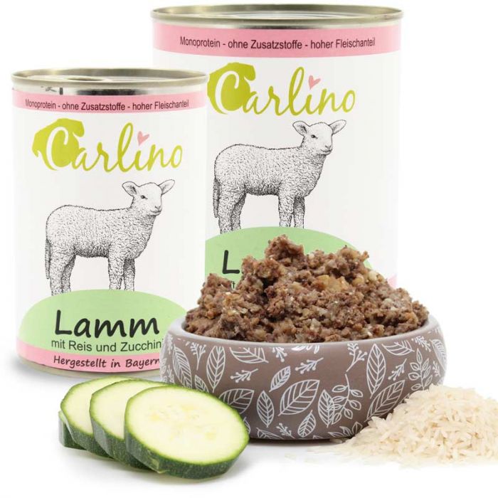 Unser glutenfreies Carlino Hunde Nassfutter wurde speziell entwickelt, um die Bedürfnisse deines Hundes abzudecken. Saftiges Lammfleisch und Innereien, leicht verdaulicher Reis und frische Zucchini bilden die Grundlage dieses hochwertigen Futters. Als Monoprotein, ist dieses Futter durch seine Rezeptur sehr verträglich und auch gut geeignet für Allergiker und Hunde mit Futtermittelunverträglichkeiten. Die sorgfältig ausgewählten Zutaten fördern die Verdauung, können für ein glänzendes Fell sorgen und können das Wohlbefinden des Hundes unterstützen . Frei von Gluten ist unser Hundefutter die perfekte Wahl, um deinem Hund eine schmackhafte und ausgewogene Ernährung zu bieten.