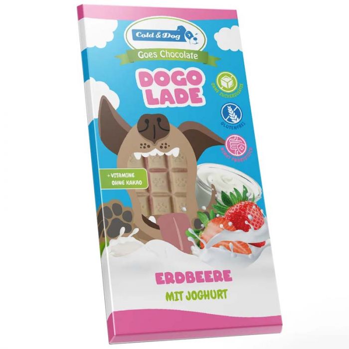 Die cremige Dogolade Erdbeere ist ein speziell für Hunde entwickelter, 100 % natürlicher Leckerbissen - glutenfrei, kakaofrei, mit Erdbeeren und Joghurt, hergestellt in Deutschland.
