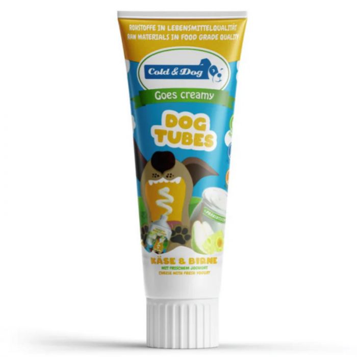 Die cremige Joghurttube Käse & Birne ist ein hochwertiger Snack für Hunde mit laktosefreiem Joghurt, Edamer Käse und fruchtiger Birne. Ideal als Belohnung oder als Topping - gefertigt in Deutschland.
