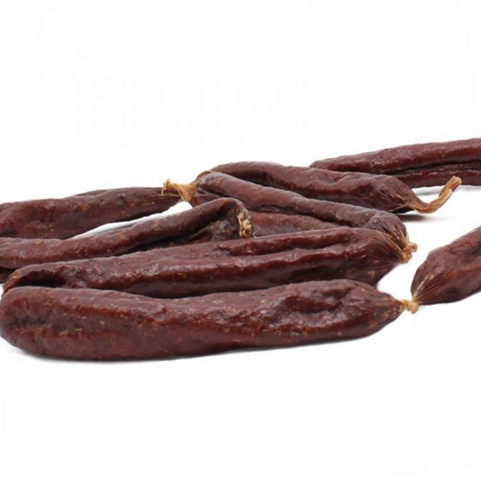 Die Würste enthalten viel schmackhaftes Rindfleisch und sind mit Seealgenmehl und etwas Salz verfeinert.