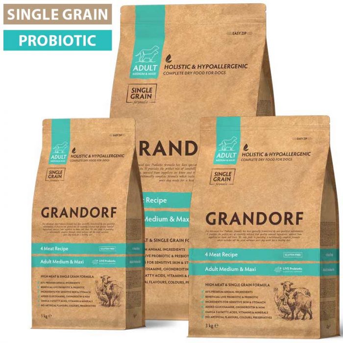 Grandorf Adult Medium-Maxi 4 Fleisch für mittelgroße und große Rassen - Single Grain und Probiotic