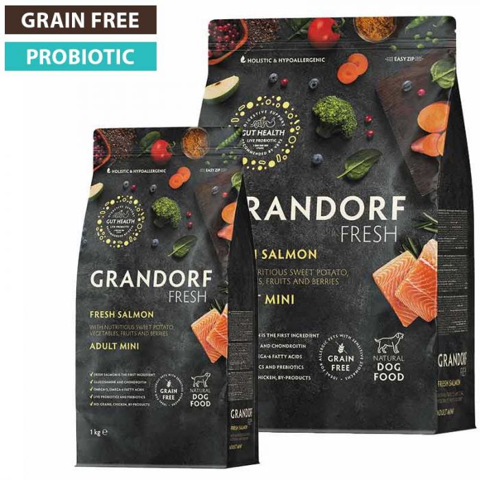 Die nährstoffreiche Rezeptur kann die Prävention von Allergien und Nahrungsmittelunverträglichkeiten unterstützen. Mit Grandorf Fresh Adult Mini Frisches Lachsfilet geben Sie Ihrem Hund die bestmögliche Mahlzeit – Tag für Tag!