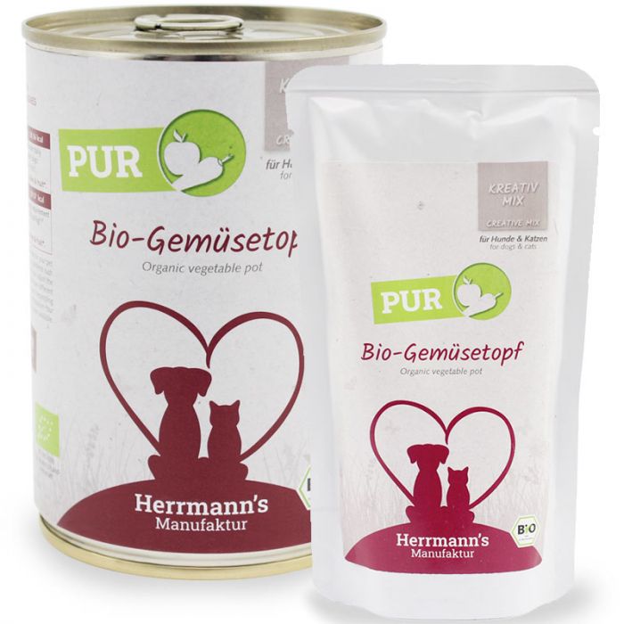 Der Bio-Gemüsetopf von Herrmanns aus der Produkt-Linie Selection Kreativ Mix enthält leckere Bio-Süßkartoffeln, Bio-Kürbis, Bio-Zucchini und Bio-Früchte (Beeren-Mix). Ideal als Ergänzung zu ihrem Reinfleisch oder Frostfleisch. DE-ÖKO-006.
