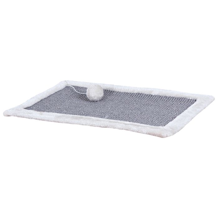 Diese Kratzmatte kann an beliebiger Stelle hingelegt oder sogar aufgehängt werden. Sie verfügt über einen Plüschrand sowie ein Spielzeug am Gummiband. Das Wetzen der Krallen ist für Katzen äußerst wichtig und kann auf der Sisalmatte ausgiebig erfolgen.