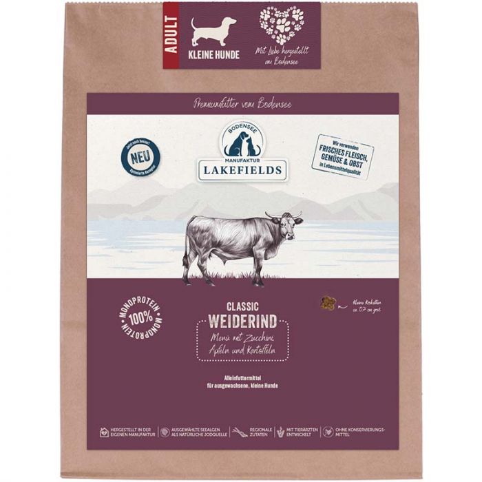Lakefields Trockenfutter Menü für kleine Hunde Weiderind mit Zucchini, Äpfeln und Karotten