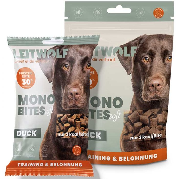 Entdecke mit den Leitwolf Mono Bites Duck den idealen Premium-Hundesnack für ernährungsbewusste Hundehalter. Mit 100 % Entenfleisch als einzige tierische Proteinquelle bietet dieser getreidefreie Snack höchste Verträglichkeit - perfekt für sensible Hunde oder als Ergänzung bei Ausschlussdiäten.