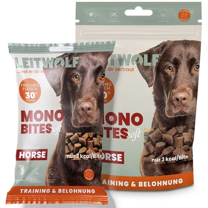 Entdecke mit den Leitwolf Mono Bites Horse den idealen Premium-Hundesnack für ernährungsbewusste Hundehalter. Mit 100 % Pferdefleisch als einzige tierische Proteinquelle bietet dieser getreidefreie Snack höchste Verträglichkeit - perfekt für sensible Hunde oder als Ergänzung bei Ausschlussdiäten.