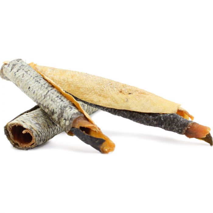 Die schmackhafte Lachshaut mit Fleisch von Lunderland ist reich an Omega 3+6 und ein idealer Kausnack für deinen Vierbeiner.