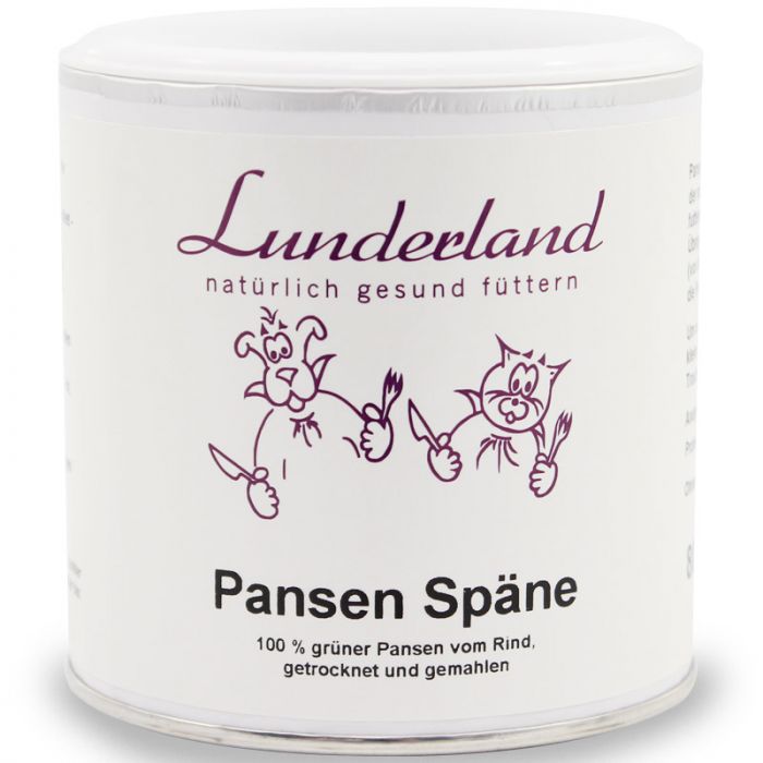 Pansen Späne von Lunderland sind der perfekte Appetitanreger und machen sowohl Nassfutter als auch Trockennahrung für futtermäkelige Hunde und Katzen wieder attraktiv. Es ist kein Geheimnis, dass viele Hunde – und mehr Katzen, als man denkt – den einzigartigen Geruch und Geschmack von Pansen lieben. Besonders bei Freigängern und gebarften Katzen sorgt der Pansen oft für einen Anstieg des Appetits. Achten Sie jedoch darauf, Katzen zunächst mit kleinen Mengen an die Pansen-Späne zu gewöhnen, um ihre Akzeptanz zu testen.