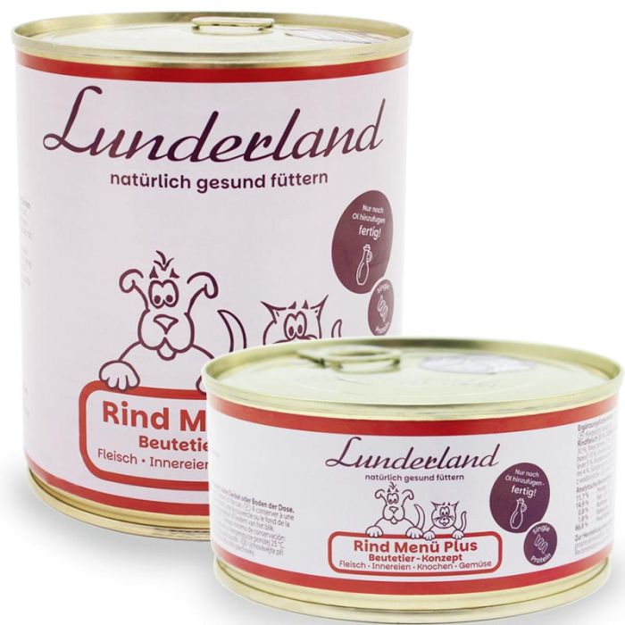 Die Lunderland Rind Menü Plus Dose, höchste Qualität und genau das was deine Vierbeiner wirklich brauchen. Es ist nur eine Proteinquelle enthalten und ist dadurch ideal für Ausschlussdiäten bei Hunden und Katzen mit Futtermittelunverträglichkeiten geeignet.