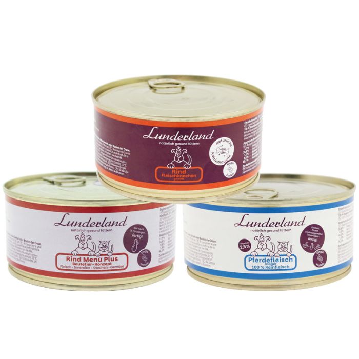 Ab 12 Dosen Lunderland Nassfutter a 300g erhalten Sie 3% Rabatt
