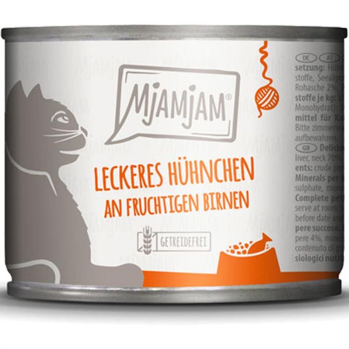 Wir vergleichen nicht Äpfel mit Birnen! Wir wissen, dass beides fantastisch in unseren Mahlzeiten schmeckt! Leckeres Hühnchen an fruchtigen Birnen - nicht nur unglaublich schmackhaft, sondern wie gewohnt mit extra viel Fleisch, frischem Obst und natürlich getreidefrei. Gönnt eurer Samtpfote diesen Leckerbissen, weil´s MjAMjAM schmeckt….