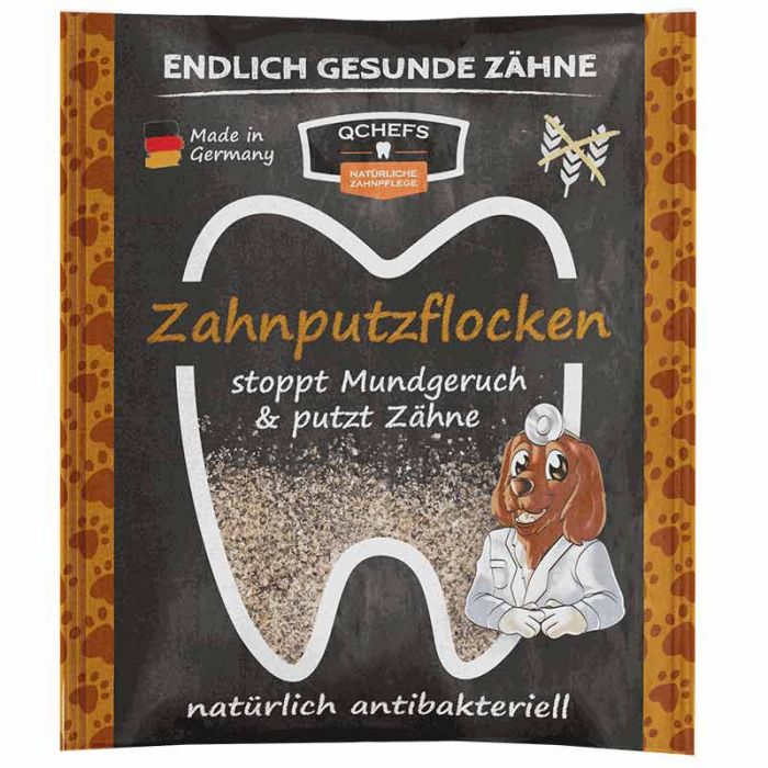 Die QCHEFS Zahnputzflocken sind für Schleckermäuler und Nichtkauer. Als Nachtisch zum Aufschlecken oder einfach dem Futter beigemengt, sind die Käseflocken eine natürliche Nahrungsergänzung.