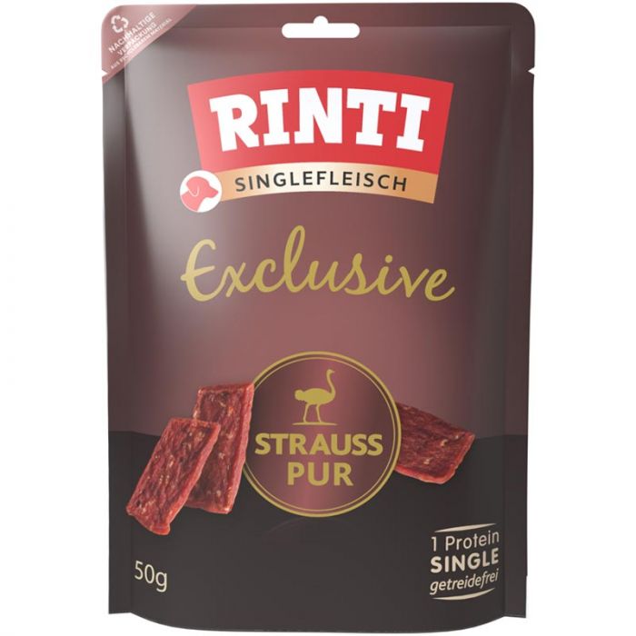RINTI EXCLUSIVE Strauss PUR ist ein Snack für Kennerhunde mit besonderen Ansprüchen.
