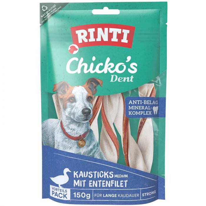 Der Rinti Snack Chicko Dent Strong mit Ente wird ausschließlich aus bissfester Rinderhaut und einer Einlage aus frischem Entenbrustfilet zubereitet, angereichert mit einem speziellen Wirkstoffkomplex für die tägliche Zahnpflege. Sie sind nicht nur besonders lecker, sondern sorgen auch für saubere Zähne.